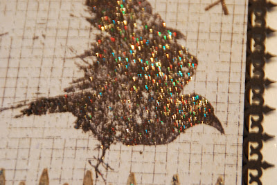 Jeg har embosset fuglen med sort embossing med glimmer i.